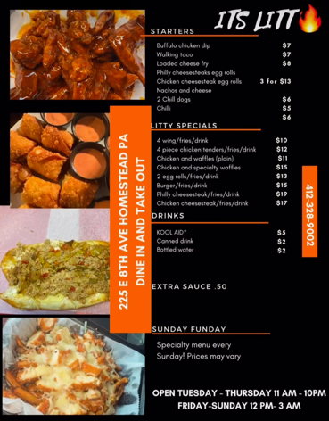 At Its Litt, we take pride in our deliciously crafted pizzas that cater to everyone's taste buds. Our menu also offers burgers, sandwiches, and tacos. From a diner experience, you can also come for our tobaccos and vapes!